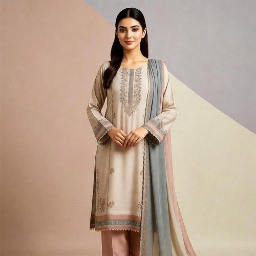 • Experience elegance with this beautifully designed premium women’s three-piece salwar kameez set. Perfectly crafted in soft pastel beige tones, this outfit features delicate embroidery on the front, sleeves, and hemline. The lightweight fabric ensures comfort throughout the day, while the matching dupatta enhances the overall graceful look. Ideal for festive wear, casual gatherings, office wear, or special occasions. A timeless choice for women who love subtle sophistication.